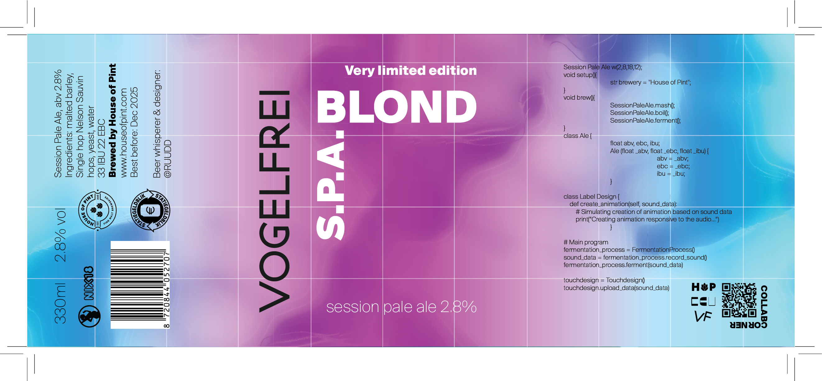of the design. So one could say that the beer (yeast) designed the base elements of its own packaging.