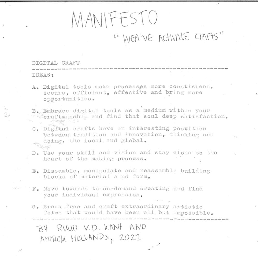 With our project we want the novice creative inspiration to embrace technological developments in art and to use them to find their individuality. We want to communicate this idea by means of a manifest and an installation in order to enthuse the target group through an experience.